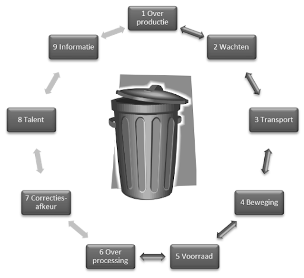 Binnen de Lean methodologie zijn 9 verspillingen geïdentificeerd, die je vaak terugziet in een proces. Voorbeelden hiervan zijn: